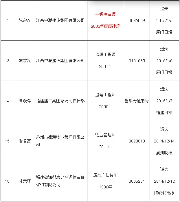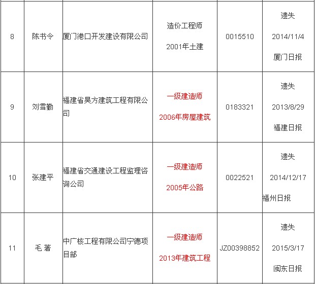 福建一級(jí)建造師執(zhí)業(yè)證書(shū)補(bǔ)辦公示