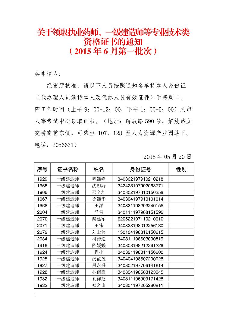 2014年安徽蚌阜一級(jí)建造師資格證書領(lǐng)取通知