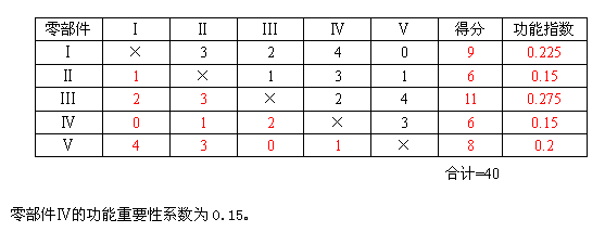 在不修正各功能累計得分的前提下,零部件Ⅳ的功能重要性系數(shù)為( )。
