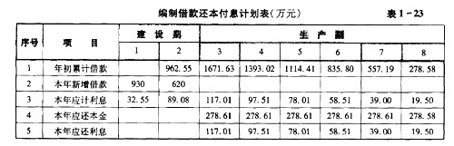 問題(1):編制借款還本利息計(jì)劃表,見表1-23