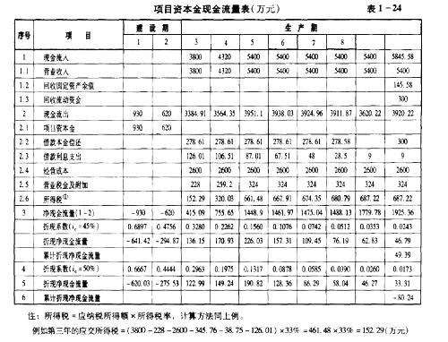 問題(3):編制項(xiàng)目資本金現(xiàn)金流量表,見表1-24