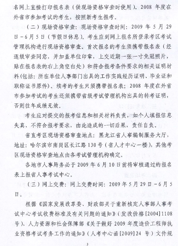 黑龍江關(guān)于做好2009年度造價(jià)工程師執(zhí)業(yè)資格考試工作有關(guān)問題的通知