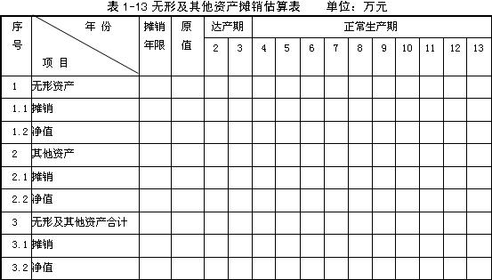 (2)根據(jù)表1-12和表1-13給定的格式分別填寫項目的固定資產(chǎn)折舊費估算表和無形及