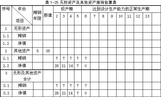 無形資產(chǎn)及遞延資產(chǎn)攤銷估算表如表1-25。