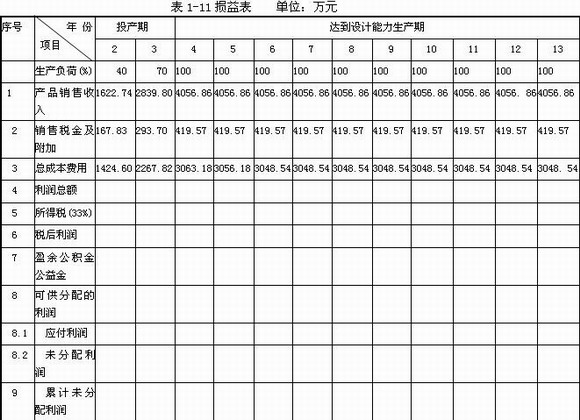 (5)項目損益表的格式和部分數(shù)據(jù)見表1-11。