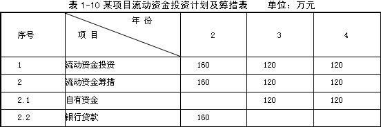 (2)項目固定資產(chǎn)投資(不包括建設期貸款利息)估算600萬元,其中自有資金100萬元,銀行貸款500萬元;固定資產(chǎn)投資貸款利率6%。根據(jù)貸款協(xié)議安排,固定資產(chǎn)投資貸款的當年利息按分年均衡貸款方式計算,項目建設期內(nèi)不需償還本息,從項目投產(chǎn)后的第一年起開始償還貸款利息,從項目投產(chǎn)后的第二年起,分四年等額償還本金,并按期償還各年應償還的利息。流動資產(chǎn)投資估算400萬元,其中自有資金160萬元,銀行貸款240萬元,流動資金貸款利率8%。根據(jù)協(xié)議,在生產(chǎn)期內(nèi)各年按期償還流動資金貸款利息,本金在壽命期最后一年償還。項目各年流動資金投資計劃及籌措表見表1-10。