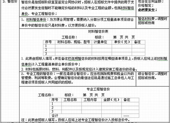 其他項目清單是指分部分項工程量清單、措施項目清單所包含的內容以外,因招標人的特殊要求而發(fā)生的與擬建工程有關的其他費用項目和相應數(shù)量的清單。 其他項目清單宜按照表 的格式編制,出現(xiàn)未包含在表格中內容的項目,可根據(jù)工程實際情況補充。