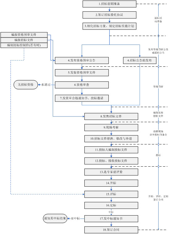 建設(shè)項目施工招標(biāo)是一項非常規(guī)范的管理活動,以公開招標(biāo)為例,一般應(yīng)遵循以下流程,如圖4。1所示。