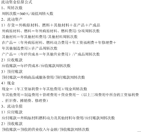 造價師輔導(dǎo)資料:流動資金估算公式匯總