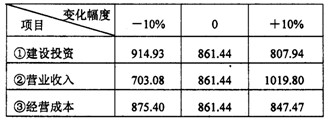根據(jù)不同因素相對(duì)變化對(duì)經(jīng)濟(jì)評(píng)價(jià)指標(biāo)影響的大小,可以得到各個(gè)因素的敏感性程度排序,據(jù)此可以找出哪些因素是最敏感的因素。本題計(jì)算得到凈現(xiàn)值確定的敏感度系數(shù)由大到小的排序?yàn)?不考慮正負(fù)): ②營業(yè)收入一①建設(shè)投資一③經(jīng)營成本。