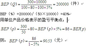 解析:用生產(chǎn)能力利用率表示的盈虧平衡點: