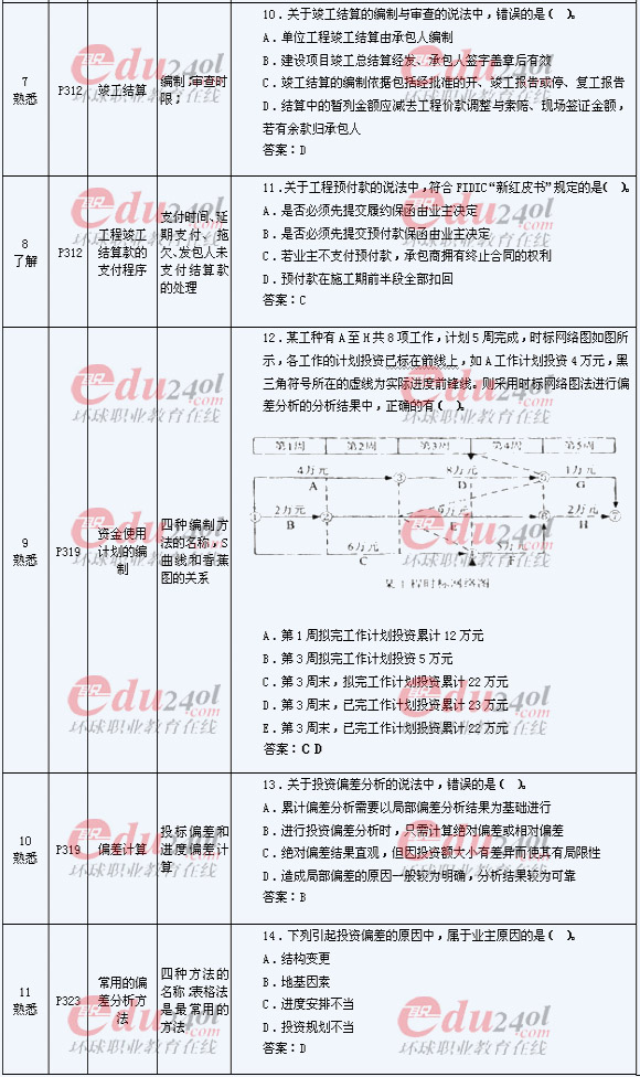 4.熟悉項目資金計劃的編制,掌握投資偏差分析的方法及糾正措施
