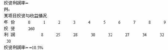 2)投資收益率(投資效果系數(shù)):項目達到設(shè)計能力后,其每年的凈收益與項目全部投資的比率。是考察項目單位投資贏利能力的指數(shù)。