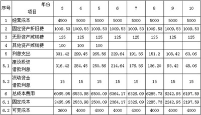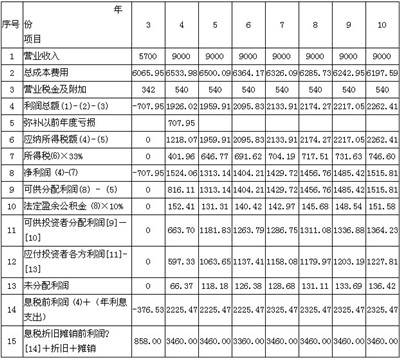 1.項目計算期為10年,其中建設(shè)期2年,生產(chǎn)運(yùn)營期8年。第3年投產(chǎn),第4年開始達(dá)到設(shè)計生產(chǎn)能力。