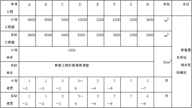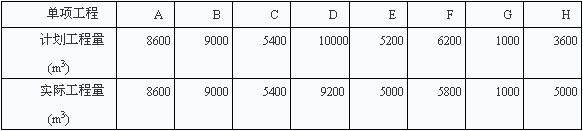 該項(xiàng)目的各項(xiàng)工作均按照最早開始時(shí)間安排,且各項(xiàng)工作每月所完成的工程量相等,即均衡進(jìn)度。各工作的計(jì)劃工程量和實(shí)際工程量如表1所示。工作D、E、F的實(shí)際工作持續(xù)時(shí)間與計(jì)劃工作持續(xù)時(shí)間相同。