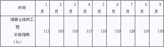 合同規(guī)定,混凝土結(jié)構(gòu)工程綜合單價(jià)為1000元/m3,按月結(jié)算。結(jié)算價(jià)按項(xiàng)目所在地混凝土結(jié)構(gòu)工程價(jià)格指數(shù)進(jìn)行調(diào)整,項(xiàng)目實(shí)施期間各月的混凝土結(jié)構(gòu)工程價(jià)格指數(shù)如表2 所示。
