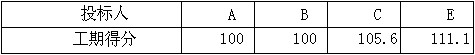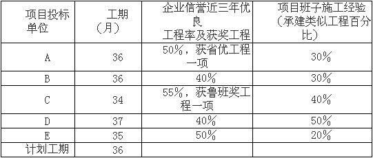 (1) 排除所有投標(biāo)人中的無(wú)效投標(biāo)。根據(jù)工期的相關(guān)要求,確定D投標(biāo)人的投標(biāo)為無(wú)效投標(biāo)。