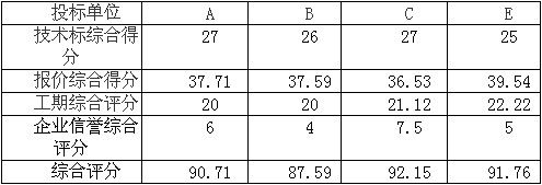 6. 計(jì)算各投標(biāo)單位各項(xiàng)得分及總分如下: