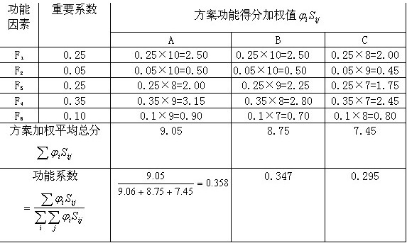 方案功能得分及重要系數(shù)表