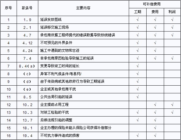 2.FIDIC合同條件中,不同索賠事件導致的索賠內容不同,大致有以下區(qū)別: