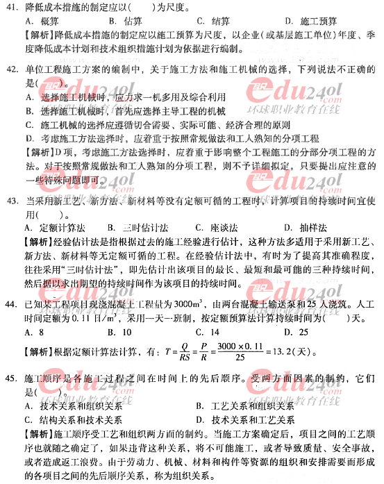 2012年造價(jià)工程師《技術(shù)與計(jì)量》(土建)過(guò)關(guān)必做試題及答案(8)