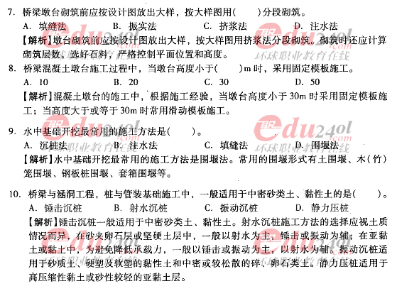 2012年造價工程師《技術(shù)與計量》(土建)過關(guān)必做試題及答案(7)