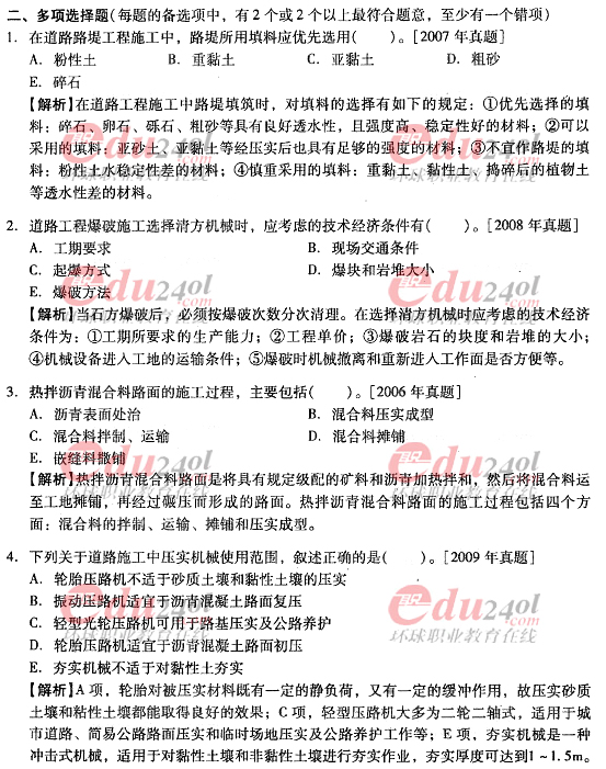 2012年造價(jià)工程師《技術(shù)與計(jì)量》(土建)過(guò)關(guān)必做試題及答案(6)