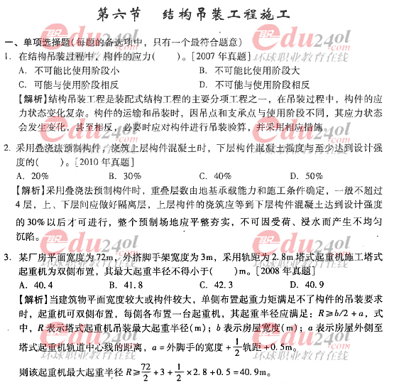 2012年造價工程師《技術(shù)與計(jì)量》(土建)過關(guān)必做試題及答案(4)