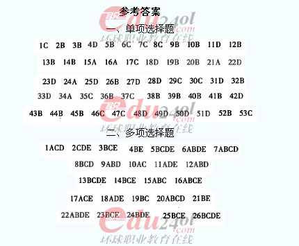 2012年造價工程師《技術(shù)與計量》(土建)過關(guān)必做試題參考答案