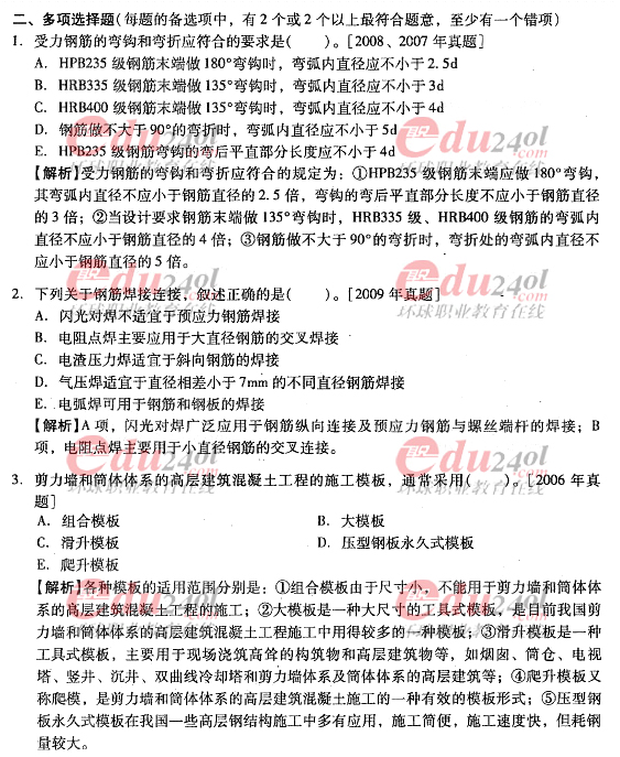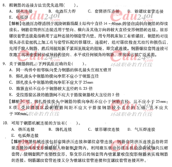 2012年造價(jià)工程師《技術(shù)與計(jì)量》(土建)過關(guān)必做試題及答案(6)