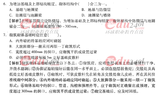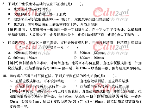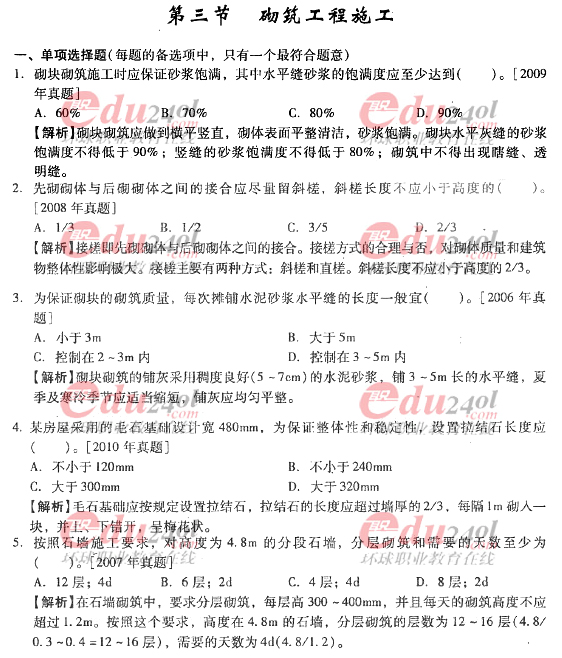 摘要 2012年造價(jià)工程師《技術(shù)與計(jì)量》(土建)過(guò)關(guān)必做試題及答案(十)主要內(nèi)容為第四章:工程施工技術(shù),第三節(jié):砌筑工程施工,單項(xiàng)選擇題、多項(xiàng)選擇題以及答案解析。