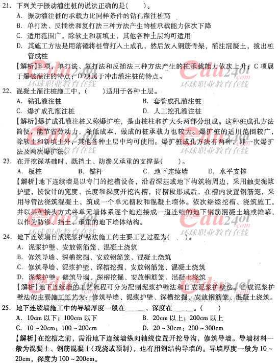 摘要 2012年造價工程師《技術(shù)與計量》(土建)過關(guān)必做試題及答案(九)主要內(nèi)容為第四章:工程施工技術(shù),第二節(jié):地基與基礎(chǔ)工程施工,單項選擇題、多項選擇題以及答案解析。