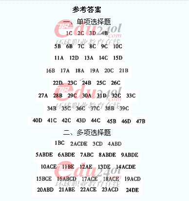 2012年造價工程師《技術(shù)與計量》(土建)過關(guān)必做試題參考答案