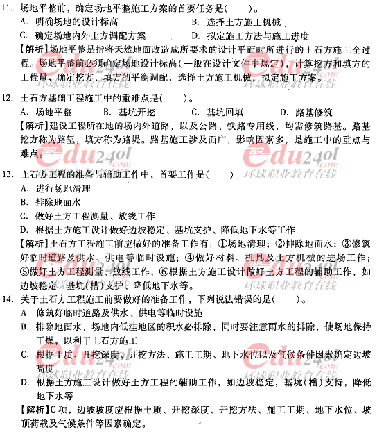 摘要 2012年造價工程師《技術(shù)與計量》(土建)過關(guān)必做試題及答案(八)主要內(nèi)容為第四章:工程施工技術(shù),第一節(jié):土石方工程施工單項選擇題、多項選擇題以及答案解析。