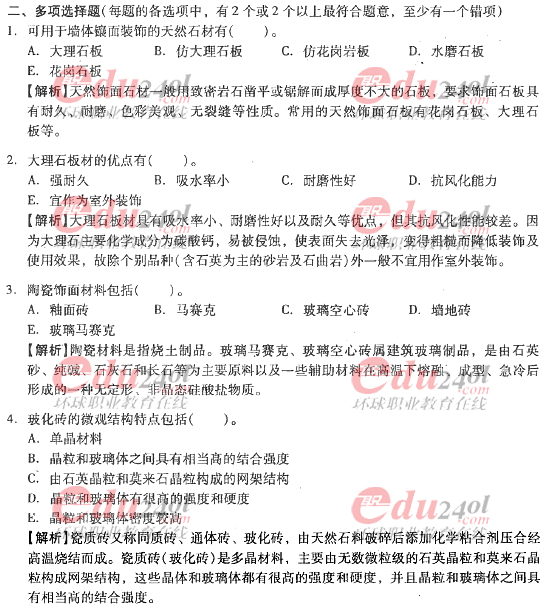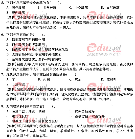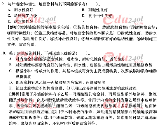 摘要 2012年造價(jià)工程師《技術(shù)與計(jì)量》(土建)過(guò)關(guān)必做試題及答案(七)主要內(nèi)容為第三章工程材料,第三節(jié):裝飾材料;第四節(jié):防水材料,單項(xiàng)選擇題、多項(xiàng)選擇題以及答案解析。