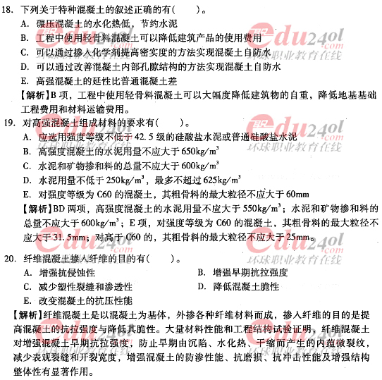 摘要 2012年造價工程師《技術(shù)與計量》(土建)過關(guān)必做試題及答案(六)主要內(nèi)容為第三章工程材料,第二節(jié)結(jié)構(gòu)材料單項選擇題、多項選擇題以及答案解析。