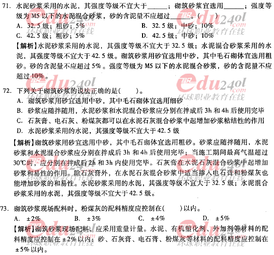 2012年造價工程師《技術(shù)與計量》(土建)過關(guān)必做試題及答案(8)