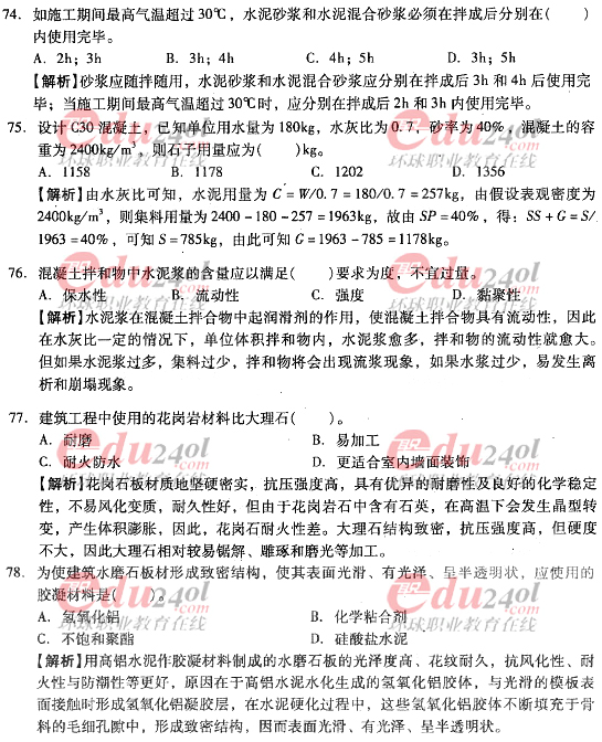 摘要 2012年造價工程師《技術(shù)與計量》(土建)過關(guān)必做試題及答案(六)主要內(nèi)容為第三章工程材料,第二節(jié)結(jié)構(gòu)材料單項選擇題、多項選擇題以及答案解析。
