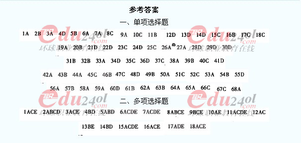 2012年造價(jià)工程師《技術(shù)與計(jì)量》(土建)過關(guān)必做試題參考答案