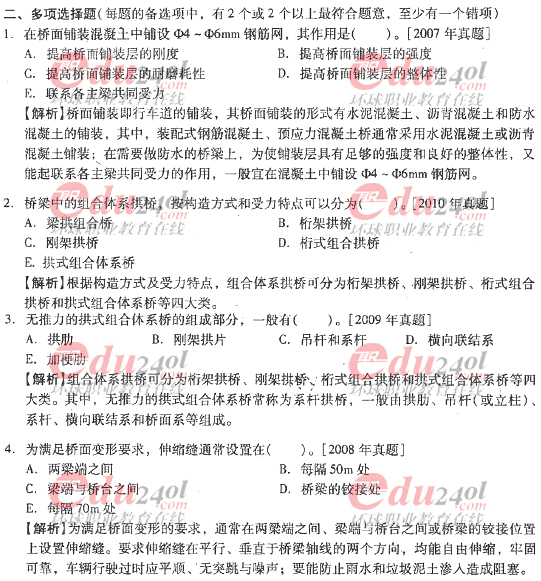 摘要 2012年造價(jià)工程師《技術(shù)與計(jì)量》(土建)過(guò)關(guān)必做試題及答案(四)主要內(nèi)容為第二章工程構(gòu)造第三節(jié)橋梁與涵洞工程;第四節(jié)地下工程單項(xiàng)選擇題、多項(xiàng)選擇題以及答案解析。