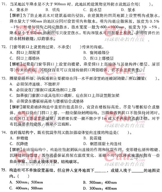 摘要 2012年造價(jià)工程師《技術(shù)與計(jì)量》(土建)過關(guān)必做試題及答案(二)主要內(nèi)容為第二章工程構(gòu)造第一節(jié)工業(yè)與民用建筑工程單項(xiàng)選擇題、多項(xiàng)選擇題以及答案解析。