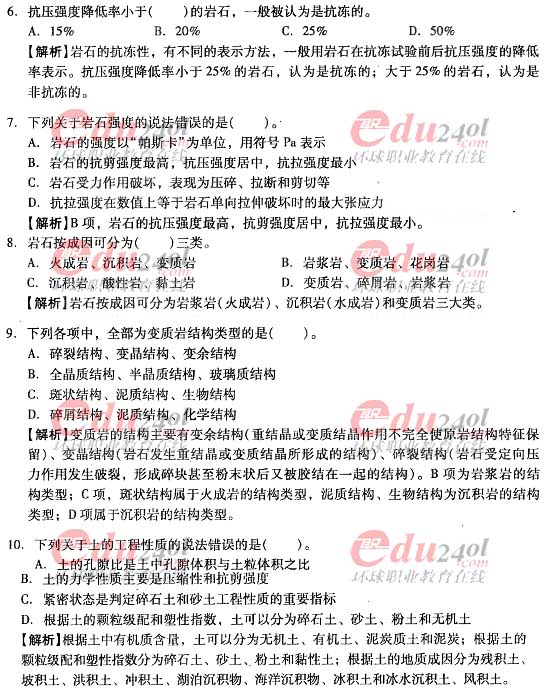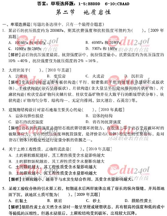 摘要 2012年造價(jià)工程師《技術(shù)與計(jì)量》(土建)過關(guān)必做試題及答案(一)主要內(nèi)容為第一章工程地質(zhì)第一節(jié)工程地址對(duì)建設(shè)工程的影響;第二節(jié)地質(zhì)巖性;第三節(jié)地質(zhì)構(gòu)造;第四節(jié)巖體特征單項(xiàng)選擇題、多項(xiàng)選擇題以及答案解析。