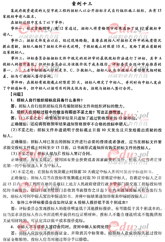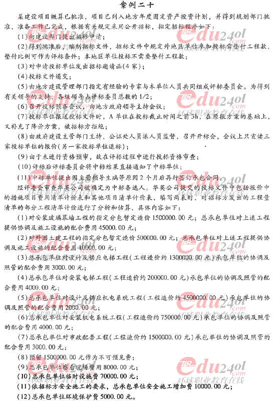 2012年造價(jià)工程師《案例分析》過(guò)關(guān)必做試題及答案(十二)