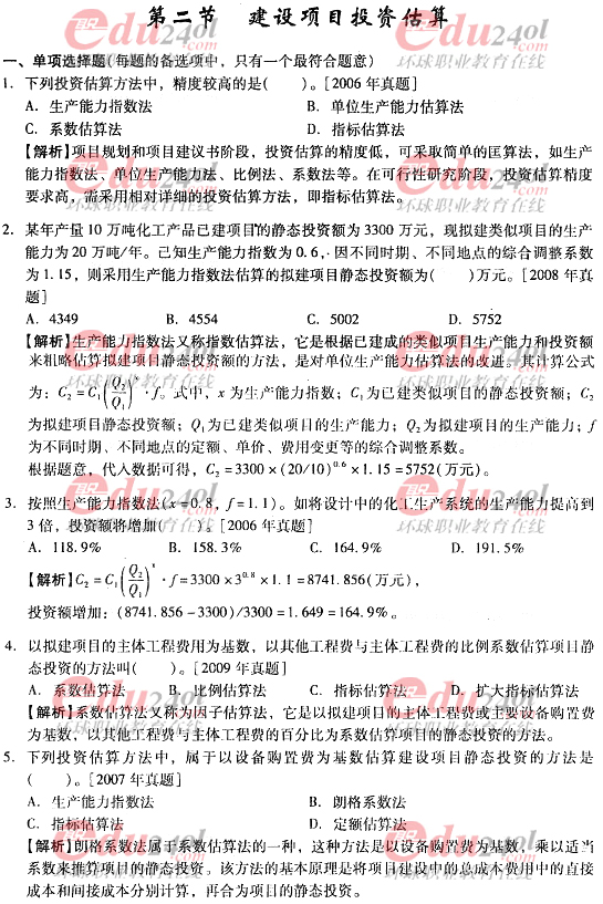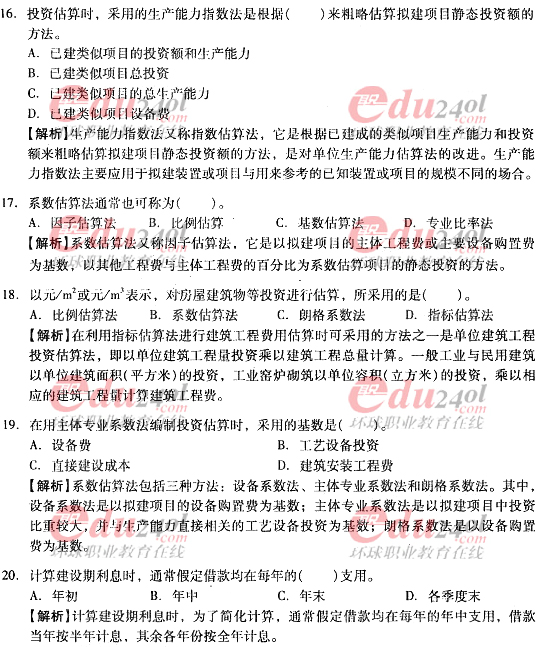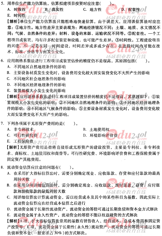 2012年造價工程師《計價與控制》過關必做試題及答案(八)