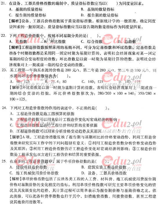 2012年造價工程師《計價與控制》過關必做試題及答案(七)