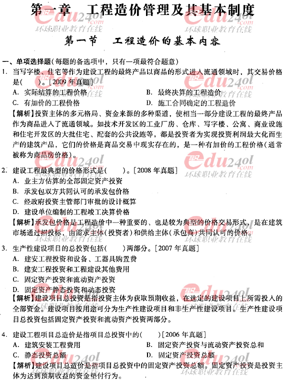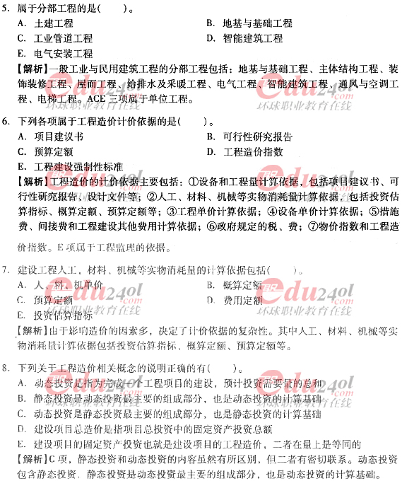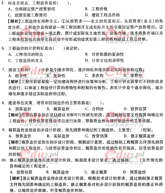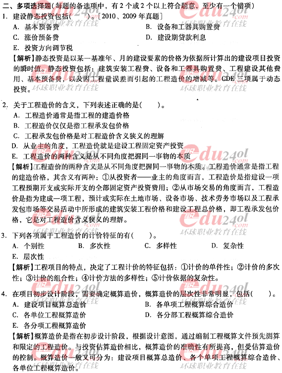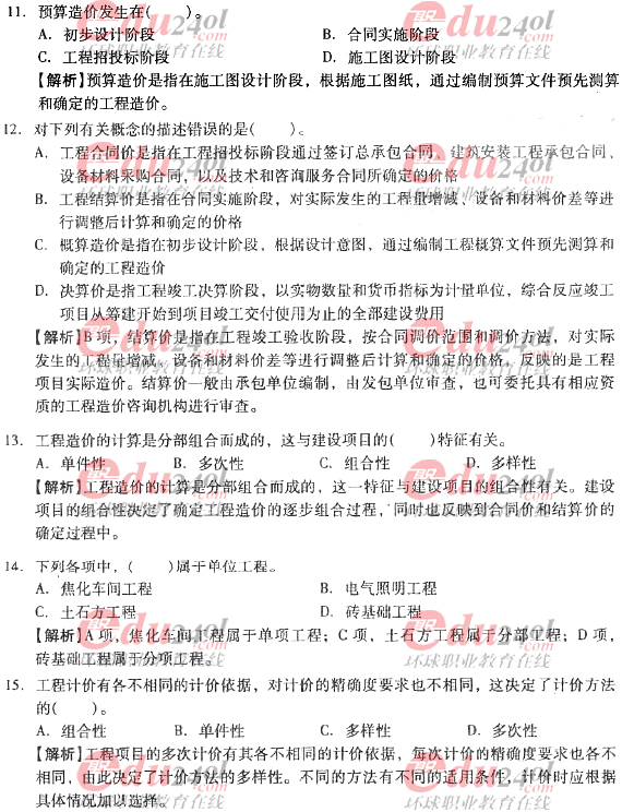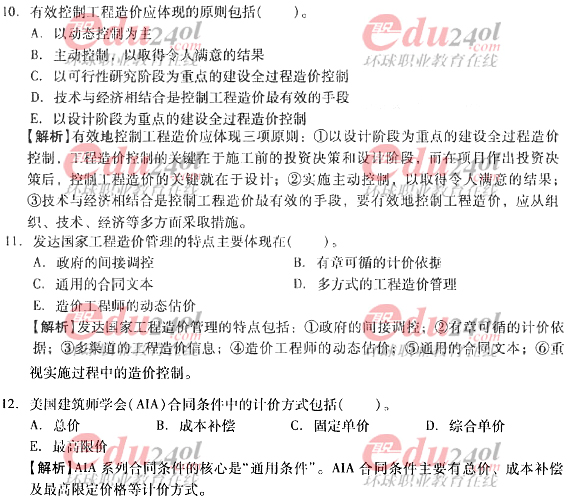 2012年造價工程師考試各科目過關(guān)必做試題及答案匯總