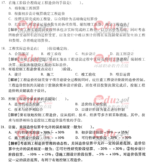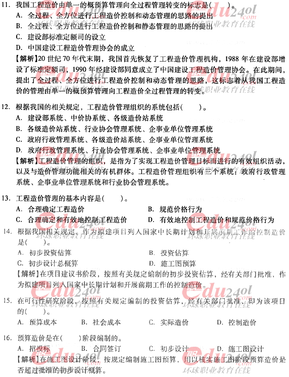2012年造價工程師《理論與法規(guī)》過關(guān)必做試題及答案(一)