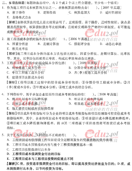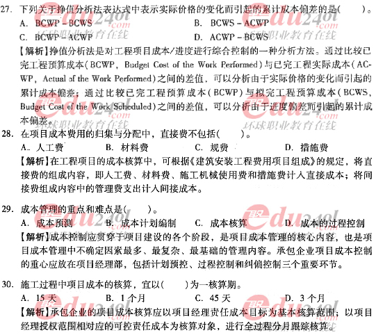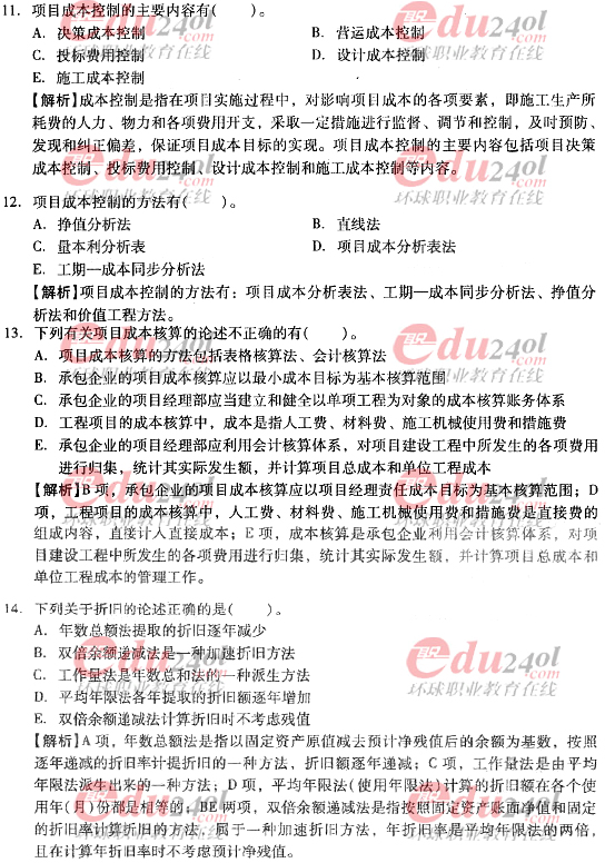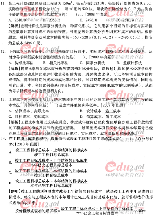 2012年造價工程師《理論與法規(guī)》過關(guān)必做試題及答案(八)