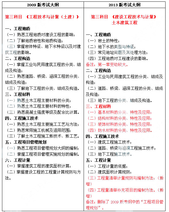 2013與2009年造價工程師土建工程考試大綱對比