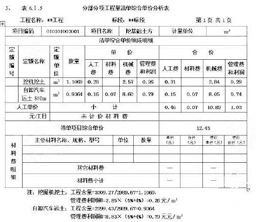 3、計(jì)算挖基礎(chǔ)土方的工程量清單綜合單價(jià),把綜合單價(jià)組成和綜合單價(jià)填入答題紙表6.1.3“工程量清單綜合單價(jià)分項(xiàng)表”中。